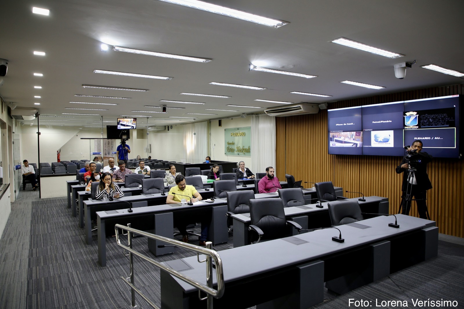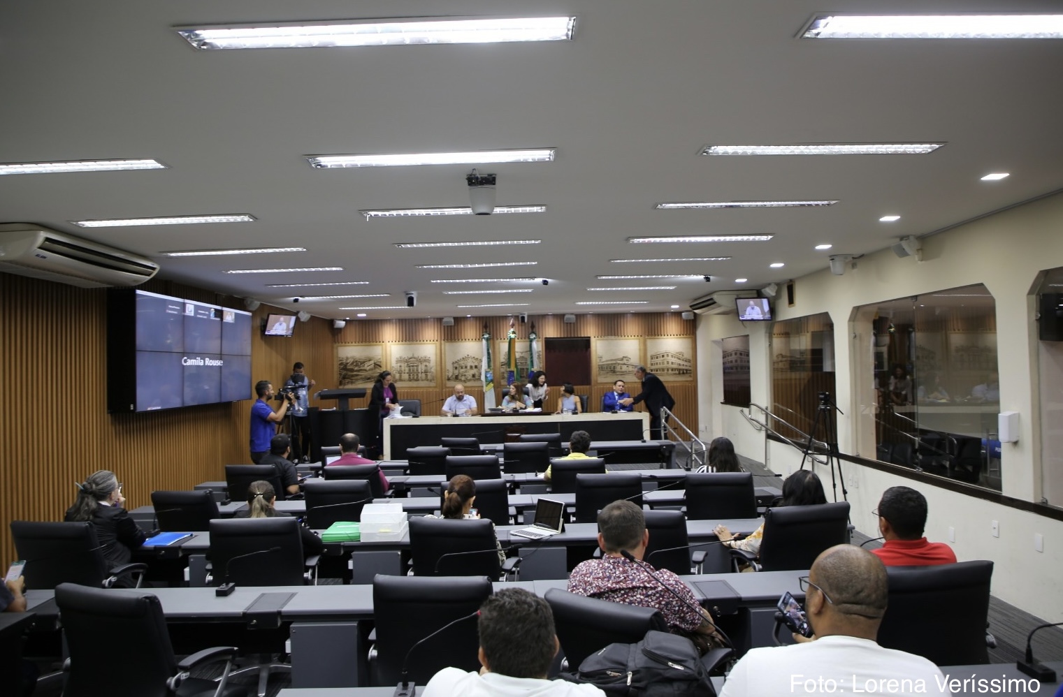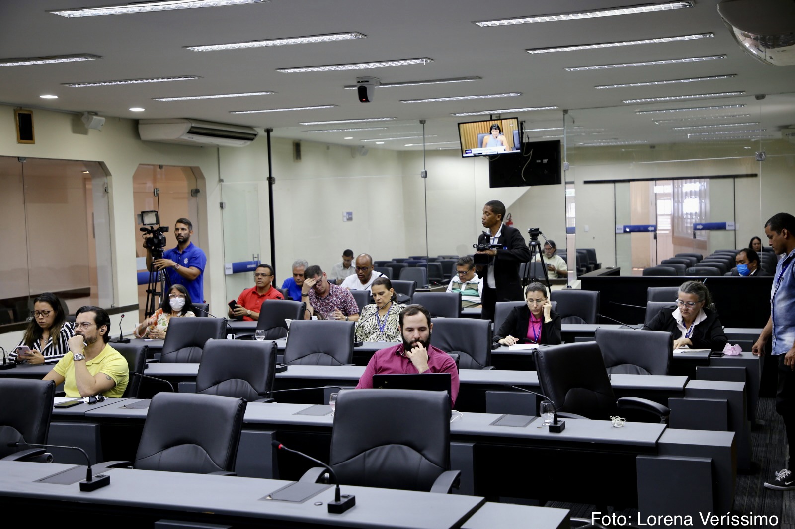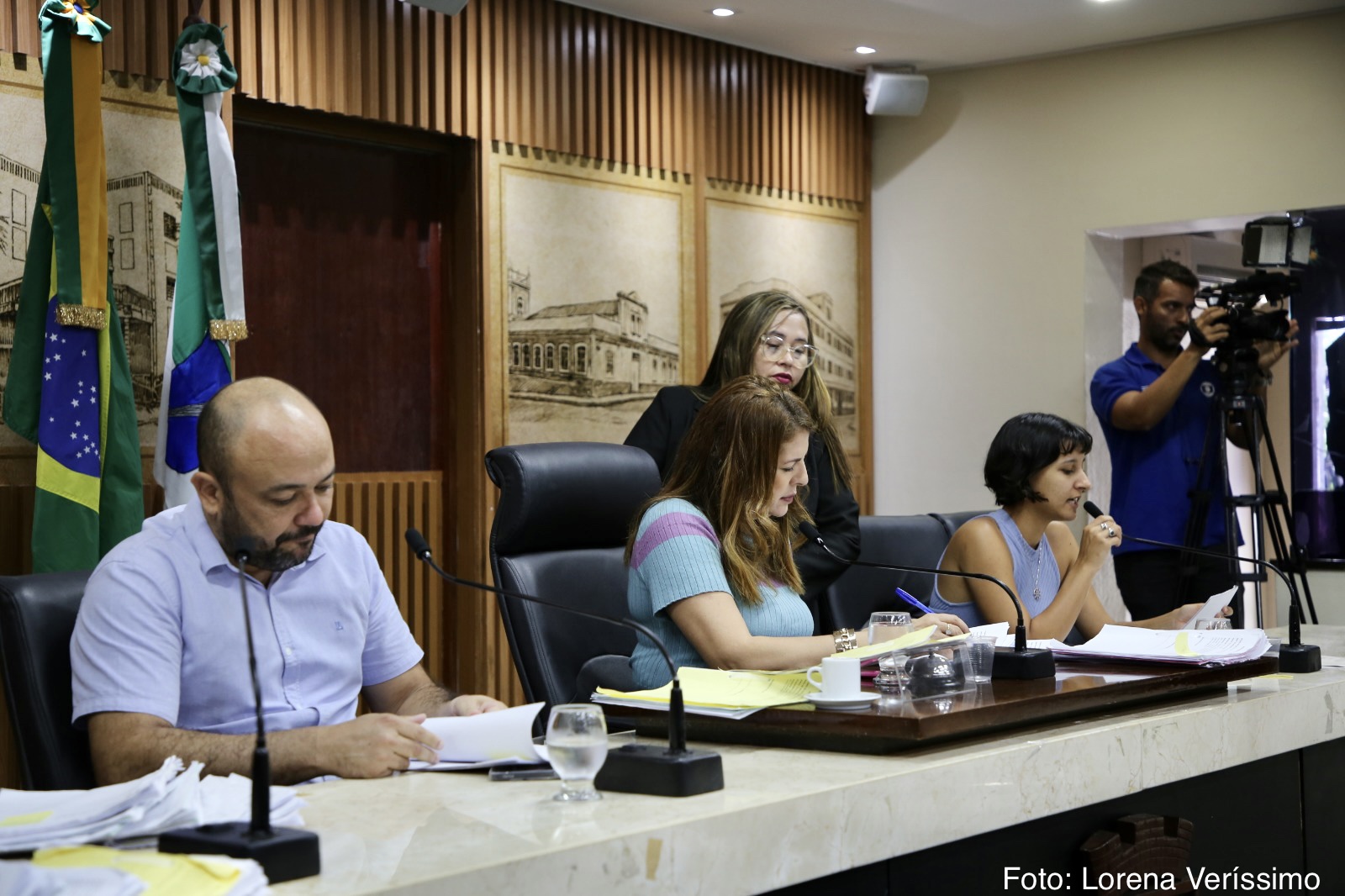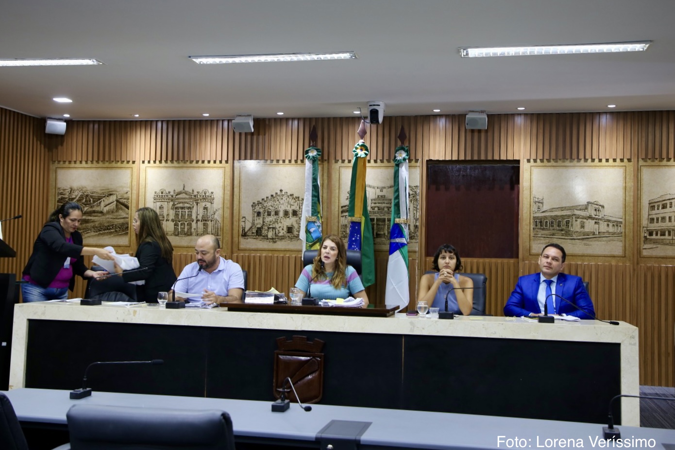 As vereadoras Brisa Bracchi (PT), Camila Araújo (União Brasil) e os vereadores Klaus Araújo (Sem Partido) e Raniere Barbosa (Avante) também participaram da reunião desta segunda-feira, quando representantes dos servidores da saúde municipal, compareceram e pediram o apoio dos vereadores para mediar o diálogo com o Município no tocante ao cumprimento da data-base da categoria.