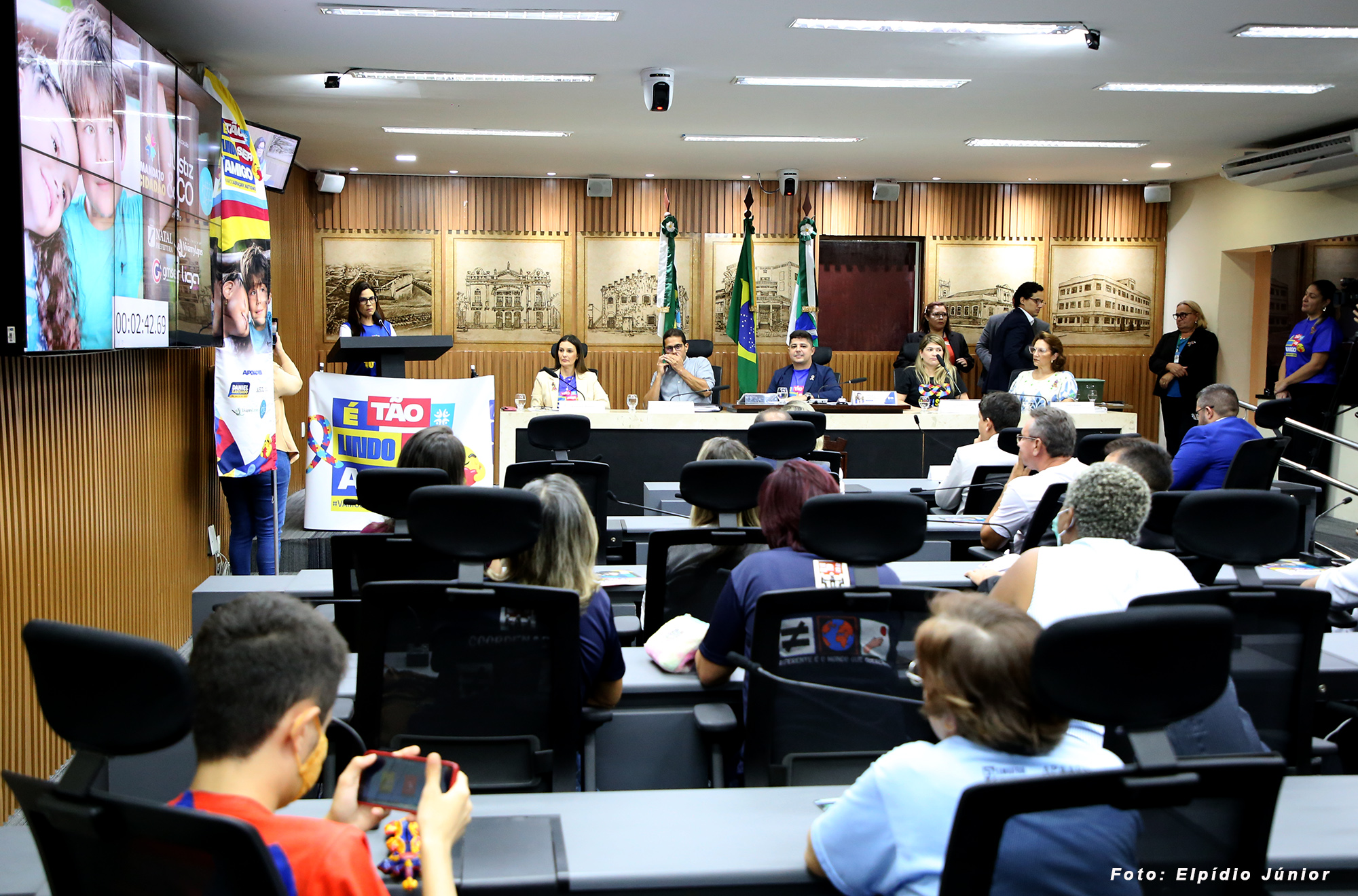 Para discutir a conscientização para a causa autista na capital potiguar, a Câmara Municipal de Natal realizou nesta quinta-feira (03), por iniciativa do vereador Daniel Santiago (PP), uma audiência pública que contou com a participação de autoridades das esferas municipal e estadual, representantes de entidades que defendem a inclusão efetiva e a assistência de pessoas com dificuldades no neurodesenvolvimento e integrantes de movimentos sociais organizados. A vereadora Thabatta Pimenta (PSOL) e os vereadores Herbert Sena (PV), Irapoã Nóbrega (Republicanos), Cleiton da Policlínica (PSDB) e João Batista Torres (DC) também estiveram presentes na audiência.