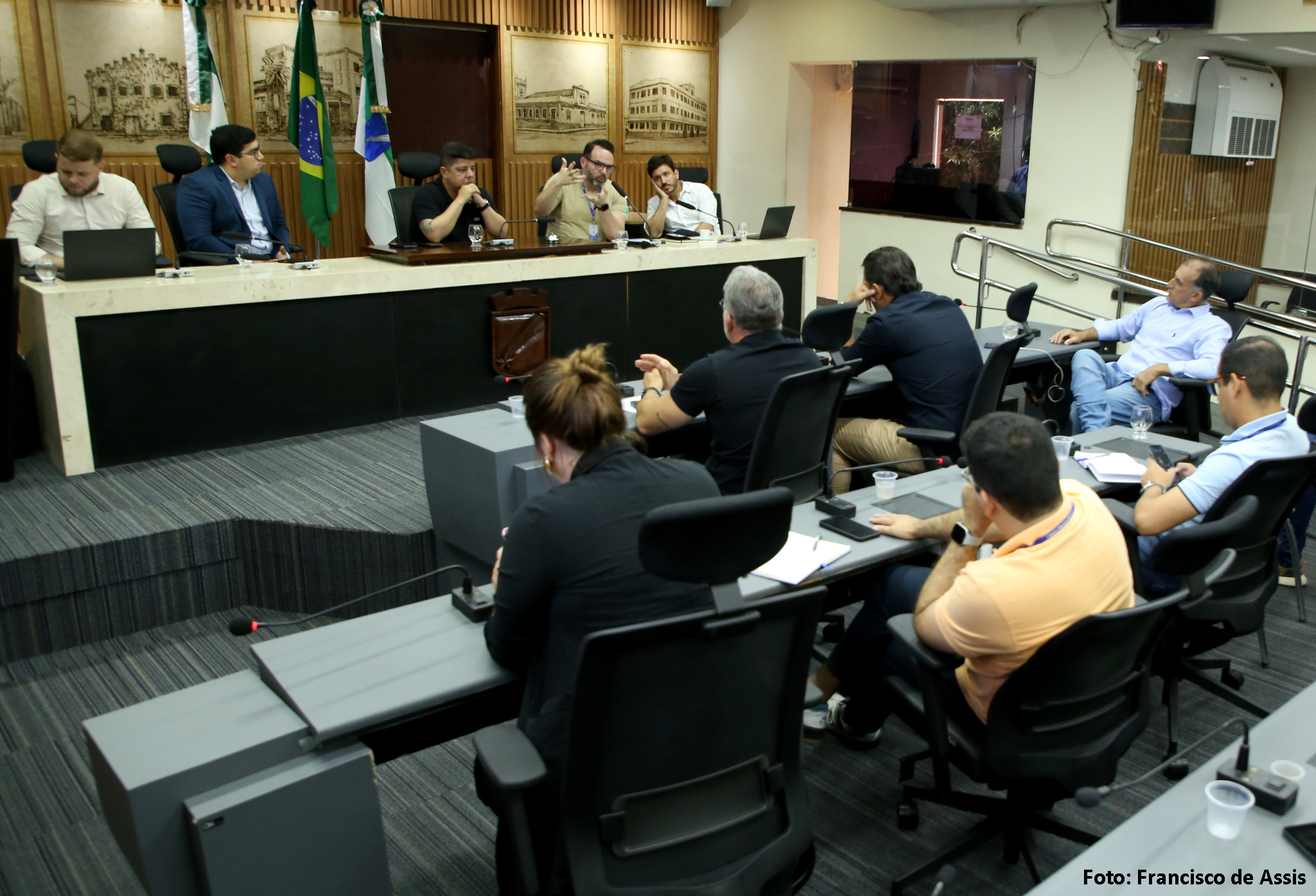 A reunião foi presidida pelo vereador Daniel Santiago (PP) e também contou com a participação do procurador Leonardo Scherman, da CMN, e do