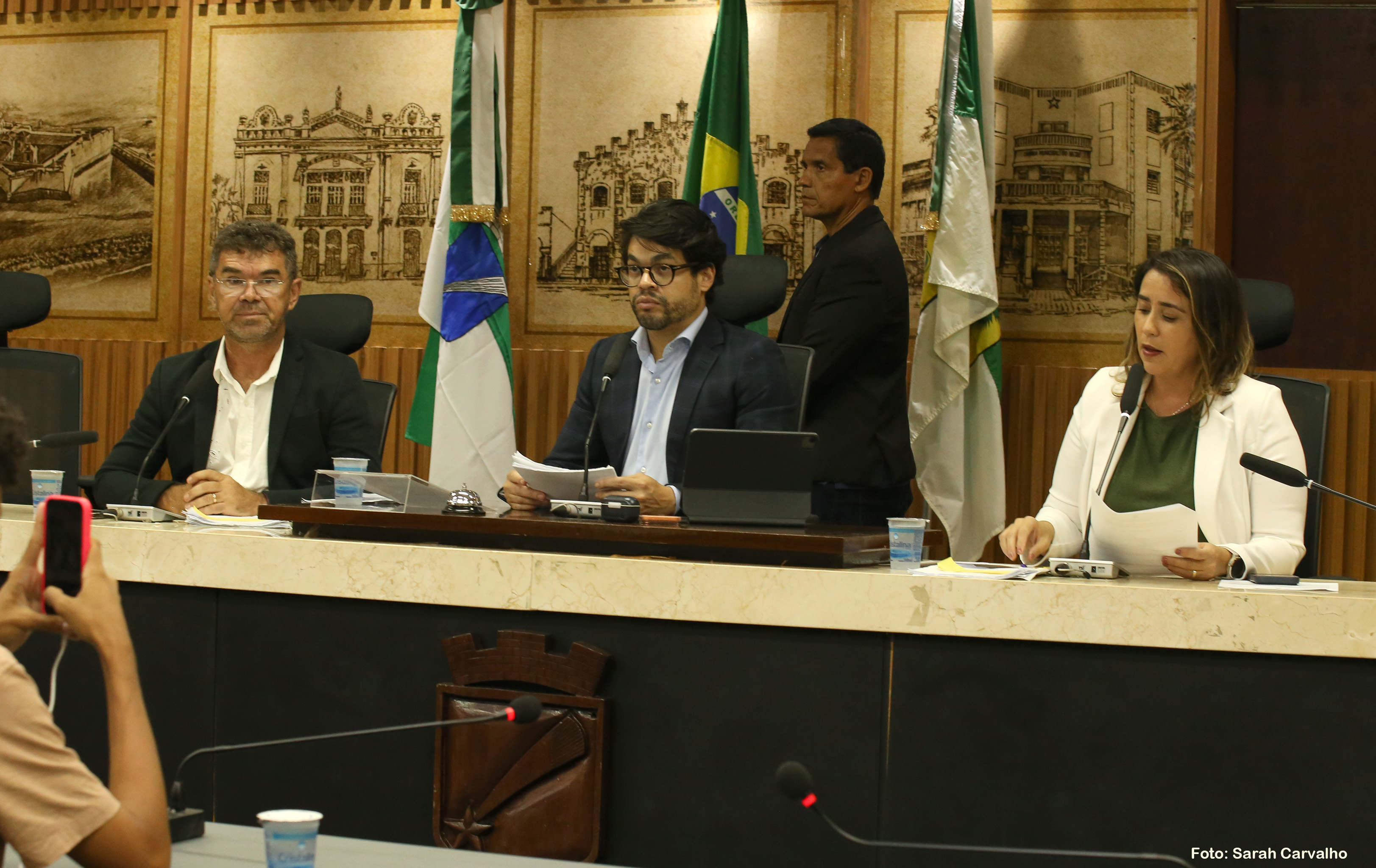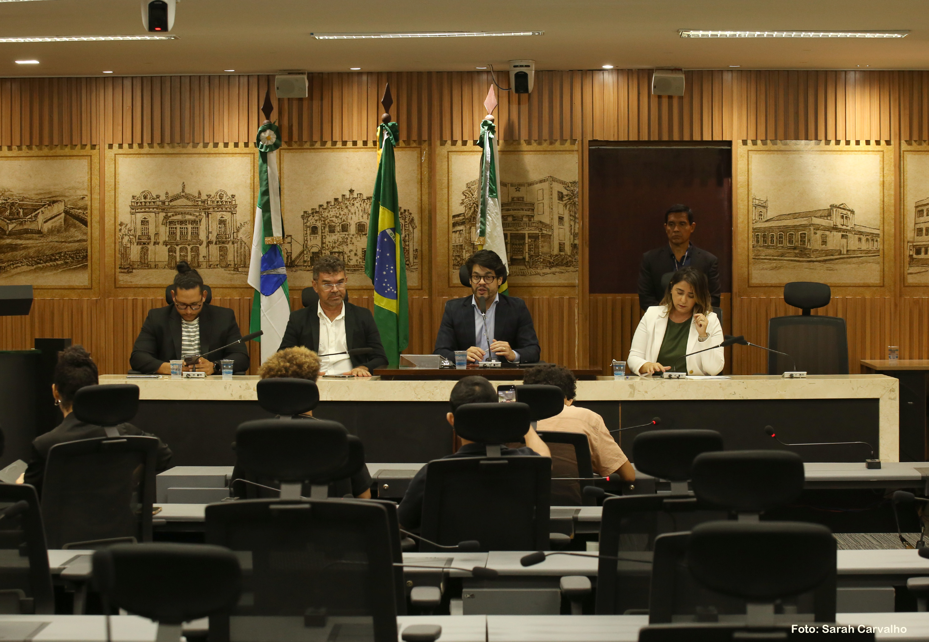 Estiveram presentes na reunião da Comissão de Transporte, Legislação Participativa e Assuntos Metropolitanos os vereadores Eribaldo Medeiros, Léo Souza, Matheus Faustino (União) e Samanda Alves (PT).